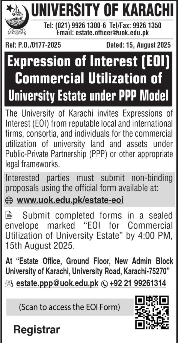 ذرائع کے مطابق پبلک پرائیویٹ پارٹنرشپ کے ذریعے زمین منتقل کرنے کا خفیہ منصوبہ چیف سیکرٹری سندھ کی ہدایت پر وقتی طور پر منسوخ تو ہوا، لیکن اس کے پیچھے موجود اصل مافیا اب مزید زور و شور سے سرگرم ہے۔ بتایا جاتا ہے کہ سندھ کے بااثر حلقوں نے سینڈیکیٹ رکن معظم قریشی کے ذریعے رجسٹرار آفس سے اشتہار جاری کروایا، جس میں جامعہ کی غیر استعمال شدہ زمین کمرشل استعمال کے لیے کمپنیوں اور برانڈز کو دینے کا اعلان کیا گیا۔