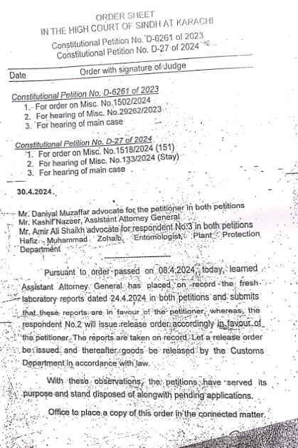 قانونی طریقہ کار کے مطابق کسٹمز محکمے کو خود سیمپل ٹیسٹ کے لیے بھیجنے کا اختیار حاصل نہیں بلکہ اس مقصد کے لیے ریفرنس ڈیپارٹمنٹ آف پلانٹ پروٹیکشن (ڈی پی پی) کو بھیجا جانا ضروری ہے۔تاہم کورئیر رسید کے مطابق ایک کسٹمز اہلکار نے خود سیمپل پارسل بک کرایا جبکہ ٹیسٹنگ فیس کی رقم بیس ہزار روپے درآمد کنندہ نے سونیری بینک شارع فیصل برانچ کے چیک کے ذریعے ادا کی جو خود اس ملی بھگت کا واضح ثبوت ہے۔