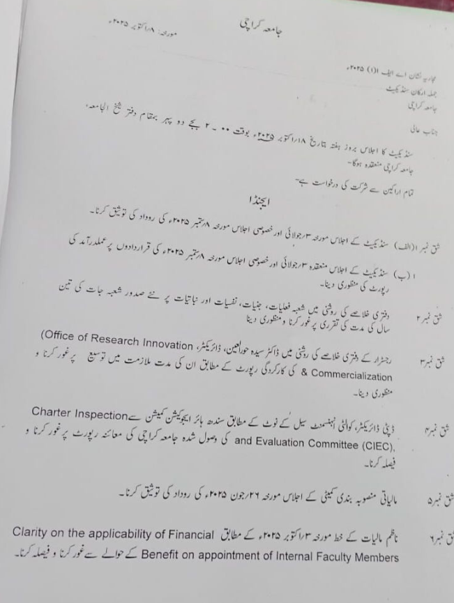 اکتوبر کے سینڈیکیٹ اجلاس کے دوران وائس چانسلر نے حورالعین کو مستقل کرنے کی کوشش کی، مگر سیکرٹری یونیورسٹی بورڈ ایجوکیشن نے واضح مخالفت کرتے ہوئے اسے خلافِ ضابطہ اقدام قرار دیا۔ وائس چانسلر نے نہ صرف ان اعتراضات کو نظرانداز کیا بلکہ سیکرٹری کے احکامات کو بھی ہوا میں اڑا دیا۔