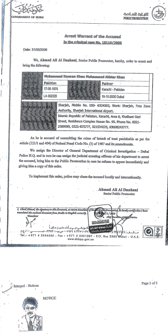 یاد رہے کہ ایف آئی اے کراچی کو حنیف مرچنٹ کی جانب سے کافی ٹھوس شواہد جمع کروائے گئے تھے جبکہ انٹر پول نے بھی کامران خان ٹیسوری کے خلاف کارروائی کے لئے حکومت پاکستان کو بھیجا ہوا ہے۔